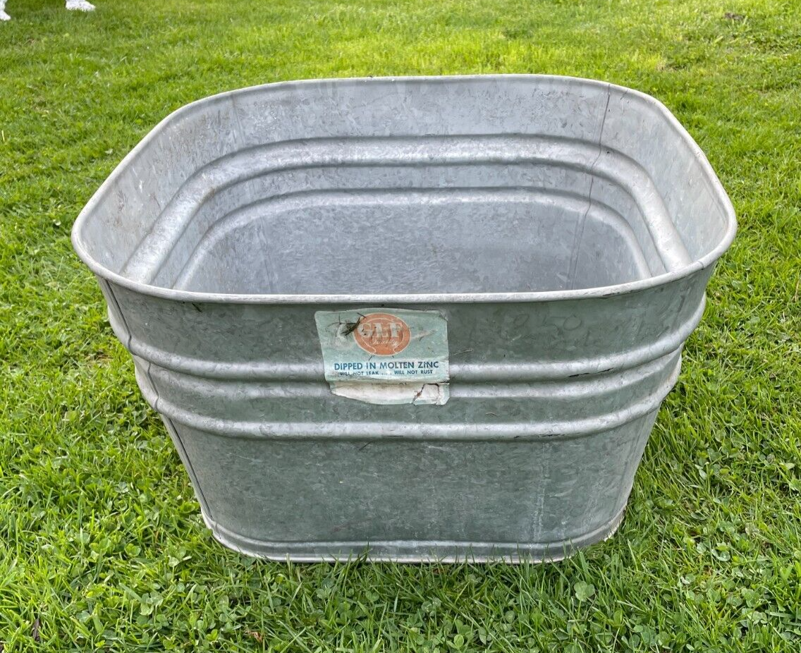 Vintage Square Galvanized Glf Wash Tub Farm Garden Planter 19 034 X 19 034 X 11 034 Ebay